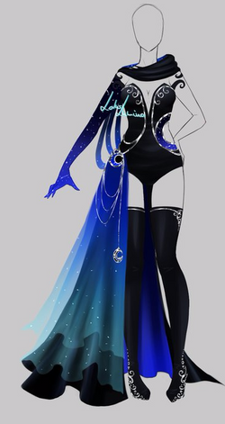 Atlanteans favour light dresses or robes, worn by citizens regardless of their gender. Trousers were introduced later. Common colours found in clothes are various shades of blue, gold, white and black. Clothes either are plain or ornamented with Atlantean symbols and pearls, popular motifs being stars, the moon, waves, and other mysterious shapes. Traditionally, clothes are beautifully draped, mimicking the movements of the ocean, but there are modern outfits with less natural, more futuristic and static designs. Due to the warm weather, it's not uncommon for Atlanteans to walk around topless. Individuals with breasts are allowed to do that just as much as those without.